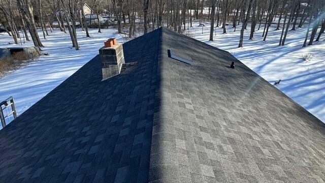 Roger in Old Lyme, CT reached out to us because the main section of his home needed a roof upgrade. The existing asphalt shingle roof had a ventilation challenge since the structure of the house did not include ridge vents or soffits, which made proper airflow difficult. This was creating intense ice dams in the winter. To solve this, our team removed the old roofing materials and installed a vented super roof system designed to improve circulation and reduce moisture buildup inside the attic space. We also added SmartVent in front of the roof hatch to help create proper exhaust ventilation for the system. The project was completed with IKO Dynasty shingles in Granite Black, giving Roger’s home a strong, well-ventilated roof and a clean updated appearance. The Klaus Roofing Way!