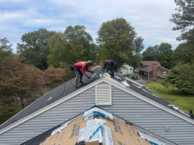 Elizabeth in Glastonbury, CT, recently took proactive steps to protect and enhance her home by replacing an aging roof that had long exceeded its effectiveness. The old roof showed significant signs of wear, putting the home's safety and structural integrity at risk. Recognizing the importance of a reliable roof, she turned to Klaus Larsen Roofing for a solution. Our team carefully removed the outdated roofing system and replaced it with a durable, high-quality system designed to endure the toughest weather conditions. We used premium materials like VeloraOne Roof Underlayment to prevent leaks and SealoronXT Ice & Water Shield to protect the most vulnerable areas of the roof. Each step was executed with precision to ensure the roof was properly sealed and secured. The transformation not only provides Elizabeth’s home with long-lasting protection but also elevates its curb appeal, giving it a refreshed and polished appearance. With her new roof in place, Elizabeth can rest easy knowing her home is safeguarded against the elements, backed by Klaus Larsen Roofing. That's the Klaus Roofing Way!