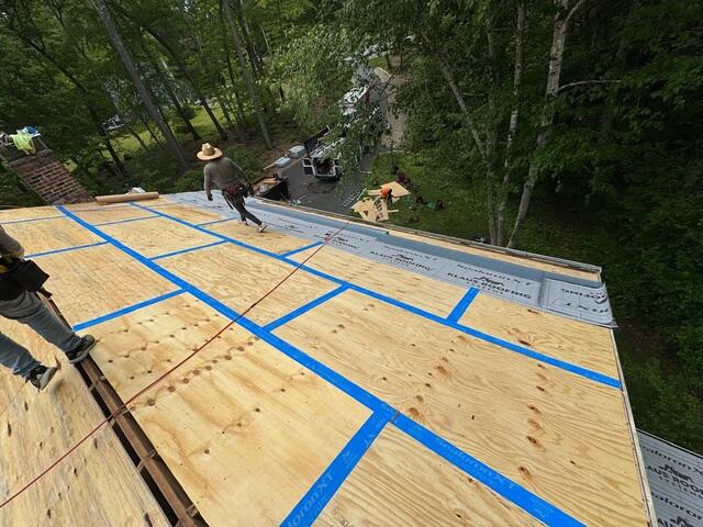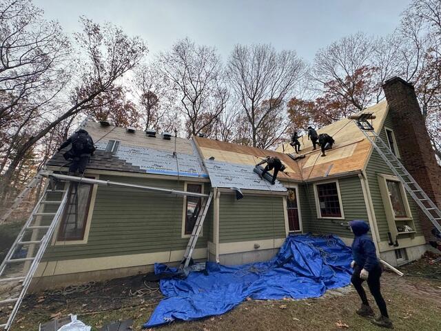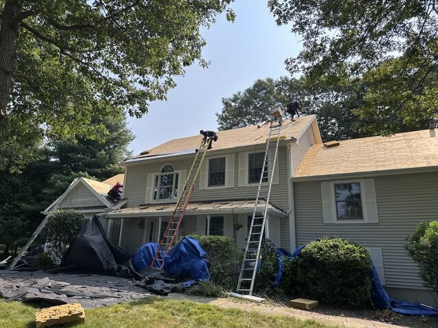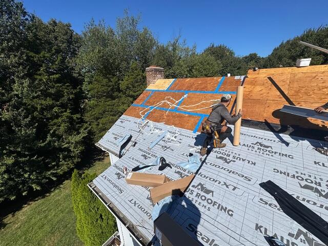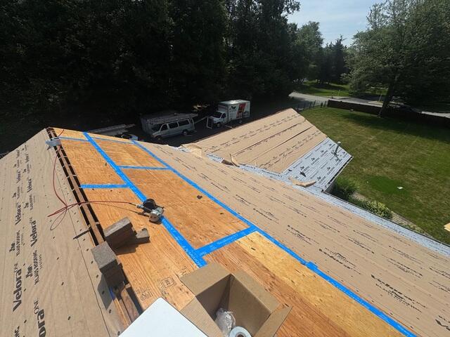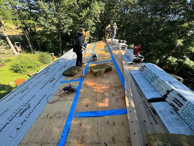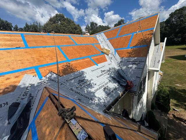 Jeffrey from Groton, CT, reached out to us when he realized his asphalt shingle roof, estimated to be around 30 years old, was overdue for a replacement. Our process began with a thorough roof inspection to assess the condition of the shingles and underlying structure. Once we identified the need for a full roof replacement, our team carefully removed the old shingles and inspected the decking for any signs of damage. To ensure long-lasting protection, we applied SealoronXT Deck Tape to seal the plywood boards together, allowing the wood to breathe while preventing water infiltration. Next, we installed the VeloraOne Roof Underlayment across the deck surface for an added layer of defense against leaks. Finally, we replaced the old shingles with a new, durable IKO shingle system designed to enhance both the safety and appearance of Jeffrey’s home. Now, his roof is ready to protect his family for years to come. If you're in need of a roof replacement contractor who prioritizes quality and efficiency, Klaus Larsen Roofing is here to help!