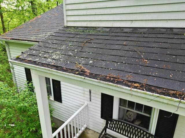 Klaus Larsen Roofing was scheduled for a roof inspection for homeowners in Salem, Connecticut. They were having issues with missing and curling shingles. When we made it to the property, we not only noticed how damaged the roof was, but the gutters were clogged with bird nest, leaves, and growing weeds. We were able to give the customer 5% off and a $500 coupon to help with upfront cost. The job is scheduled and we are going to get new gutters and a new roof put on in one single day. This is the Klaus Larsen way!