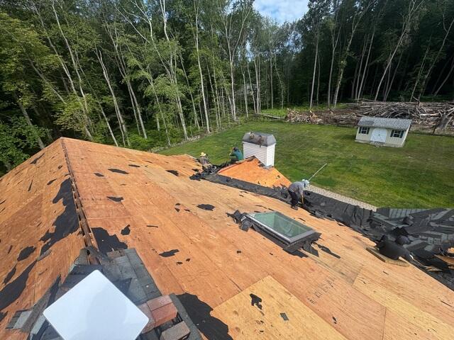 This homeowner in Lebanon, CT, decided it was finally time to update the roof on her home. The existing roof had been in place for about 23 years, and she had noticed it wasn’t holding up the way it used to. Our team began by removing the old materials and checking the decking to make sure everything underneath was solid. Once the structure was ready, we installed a complete Klaus Larsen Roofing system using SealoronXT Ice & Water, VeloraONE Underlayment, and SealoronXT Deck Tape to help protect the home from future leaks. After the roofing system was in place, we installed a brand new skylight in the bathroom to bring in natural light and give the space a much brighter feel. With everything completed, Janice now has a reliable roof and a fresh upgrade that will benefit her home for years.