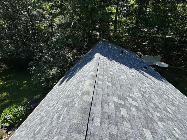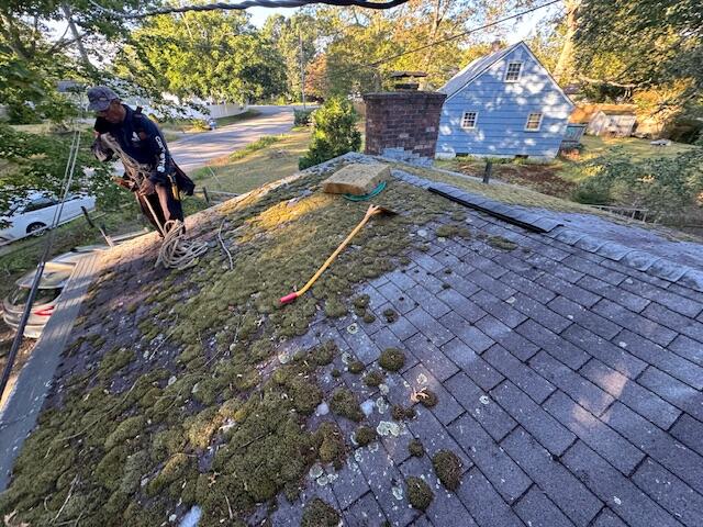 Bob in Gales Ferry, CT, gave us a call after noticing his roof was no longer holding up. The shingles were covered in moss and algae, especially in the shaded areas, which can hold moisture and speed up the wear on a roof. It had clearly aged, and Bob wanted to take care of it before any serious damage or leaks popped up. We started by removing the old roofing and installing the full Klaus Roofing System. That includes SealoronXT Deck Tape between each plywood seam to seal out moisture, SealoronXT Ice & Water Shield in vulnerable areas, and VeloraONE Roof Underlayment across the rest of the deck for leak protection. With that solid foundation in place, we installed IKO shingles in Summit Gray, giving Bob’s home a clean, refreshed look that will last for years. To address a specific water drainage issue he had near a tricky section of the roof, we also custom-built and installed a roof cricket. It’s a small upgrade with a big impact, helping direct water away from areas where it might otherwise pool and cause problems.