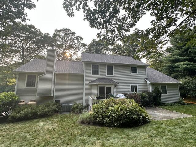 Homeowner in Colchester, Connecticut had a metal box around their faux chimney and were in need of a roof repair. The new color they wanted for the roof replacement was shadow brown. Homeowner had no leaks and no attic. This made the process go very quickly as we checked the structural components and insulation under the chimney. Overall, homeowners were incredibly satisfied with the new replacements and added warranties.