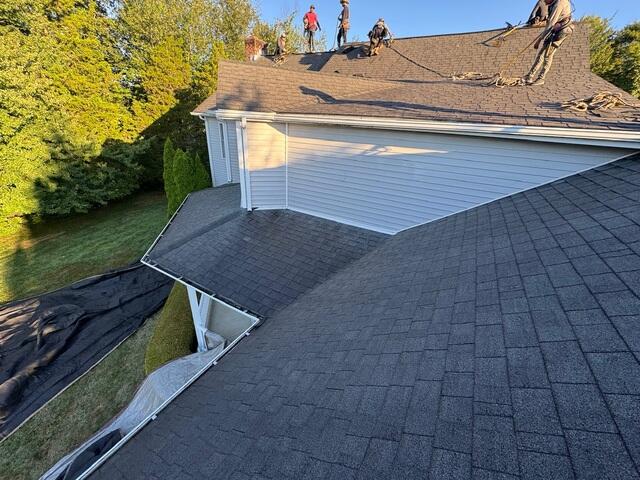 Raised ranch had 3 leaks in their home before calling Klaus Larsen Roofing to fix the problem. After weighing three different options given to the customers to decide on, they went with a full roof replacement for their home and detached garage. The results were immaculate! They will also be getting Gutter Shutter soon!