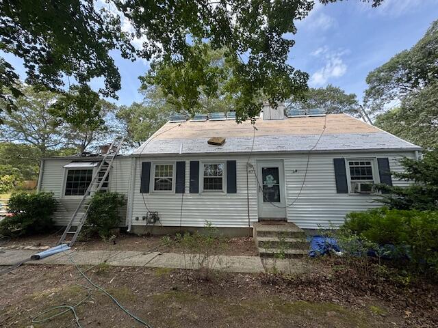 The time had come for the roof to be replaced on this Baltic, CT house, as thousands of bee's were entering the attic. We first had to re-box their entry area in with composite in order to keep these uninvited guests out for good. We also used special flashing material to match the color of the home, so that everything would look uniform. Extensive deck protection and ventilation was incorporated, including solar powered Fresh Air Deck mounts, and a VentSure ridge vent under True Def Duration Estate Gray shingles.