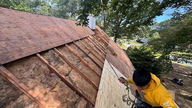 Chad, a homeowner in Ledyard, CT, was under the impression that his roof, at only five years old, should still be in good condition. To his dismay, he noticed water seeping through, raising concerns about potential damage to his home. This situation is all too common when roofing companies skip critical steps during the installation process. Without proper materials and techniques to protect against leaks, homeowners may face unexpected repairs or even the need for a complete roof replacement. Determined to protect his home, Chad turned to Klaus Larsen Roofing for a solution he could trust. After a thorough inspection, our team uncovered the root of the problem—a rotted plywood board that compromised the roof's integrity. Recognizing the urgency of the issue, we moved forward with a roof replacement.