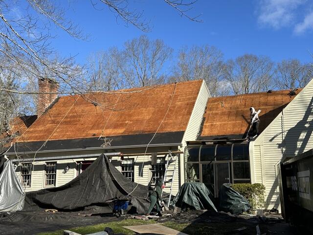 We first met this customer in Old Lyme, CT after providing a roof replacement for his neighbor. When we stripped the old shingles off the home, we found that most of the plywood was rotting and causing the roof to curve in a "U" shape. We replaced all of the rotted plywood, in order to re-secure the deck and installed Ice & Water shield.