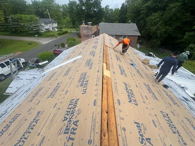 Shingles began to lift off a home in Wethersfield, CT due to recent storm damage. The homeowner purchased the home in 2015 and was told the roof had less than 10 years of life. The crew began by disposing the old shingles and replacing the damaged decking. Then sealoron was laid down which protects the roof from ice and water. Next came synthetic underlayment which also protects shingles from water or weather related damage. The homeowners chose asphalt shingles in color, Brownstone.