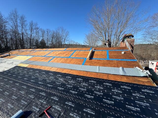 John in Woodstock, CT had a 15-year-old roof with wind damage and reached out to Klaus Larsen Roofing after his sister had a great experience with us. His insurance adjuster only approved a repair on the back slope, but John wasn’t satisfied with a partial fix, he wanted the full roof replaced. Our crew removed the old shingles and replaced any damaged plywood before installing our full protection system: SealoronXT Deck Tape, SealoronXT Ice & Water Shield, and VeloraOne Roof Underlayment. We finished the job with IKO Dynasty shingles in Frostone Grey, giving John’s home a fresh look and long-lasting protection backed by a 50-year warranty.